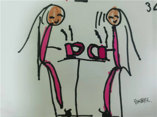 通过游戏带领孩子们体验感知漫长的一分钟、短暂的一分钟,快乐的一分钟、紧张的一分钟。孩子们也用简单的图画表征将它们记录了下来。