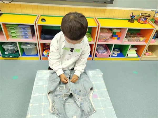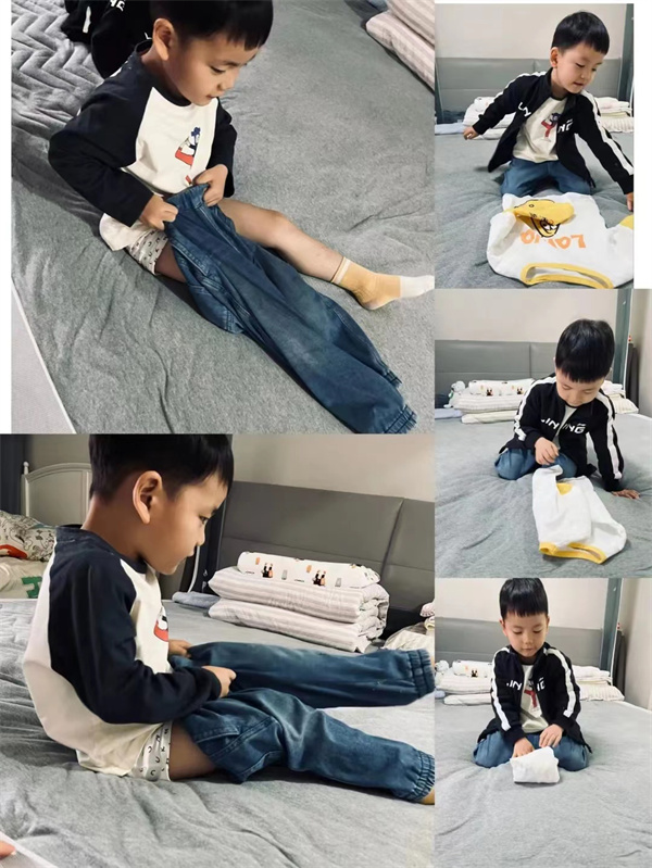 区分不出衣服的正反面、找不到套头衣服“洞洞”、不会拉拉链、扣扣子。穿衣大行动