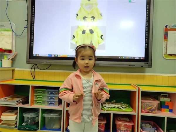 活动开始,在老师的带领下,我们一起认识了不同种类的衣服的样子,还知道了原来衣服的各个部位也有它们的名字呀!