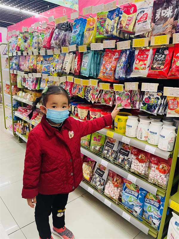 孩子们将自己喜欢的糖果带到幼儿园与大家分享,拿到糖果的小朋友迫不及待地吃了起来