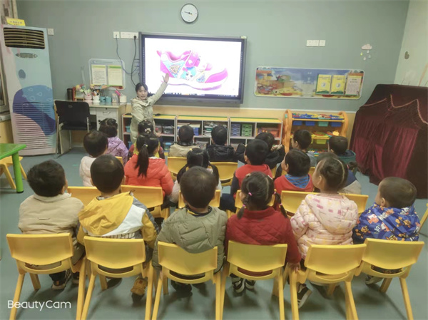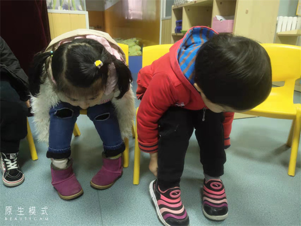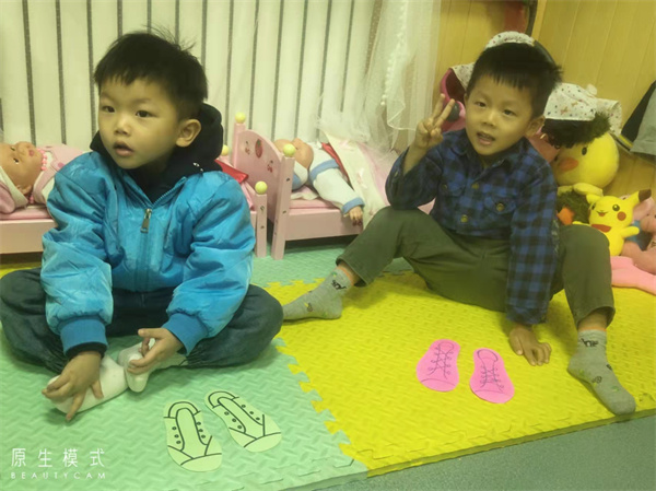 对于小班的幼儿来说,鞋子穿反的现象频繁发生。通过这一现象,我们学习了好玩、正确的穿鞋小儿歌!