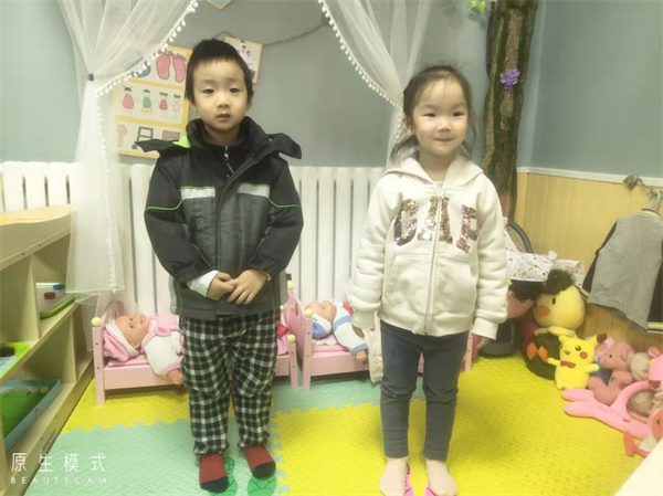 午睡起床后,小朋友们穿好衣服和鞋子。