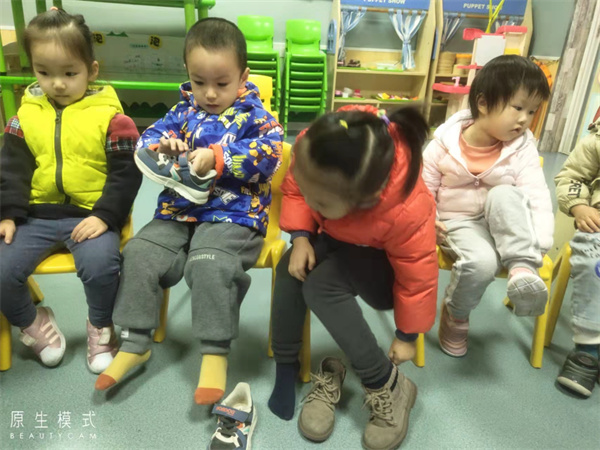 瞧,小宝贝们一个个埋头穿鞋子的样子多认真,输赢不重要,重要的是,可能在你不注意的瞬间,他们长大了!