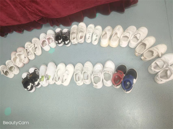 我们小班的小宝贝都特别能干,了解了鞋子的秘密,他们忍不住要来一次穿鞋子比赛呢,这不,鞋子都脱下来准备好了,就等老师喊开始了!