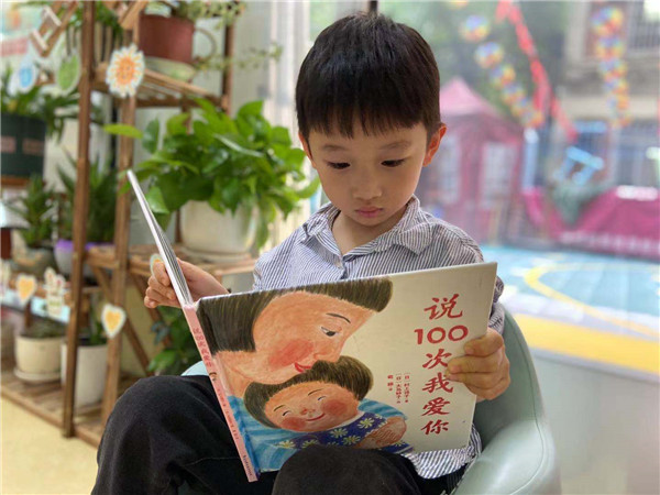 亲子关系是人世间最为天然和永久的情感联系,也是人际关系中最重要的一环,亲子关系良好,它将成为孩子一生中和他人良好关系的基础。在前期,孩子投票选出最喜爱的绘本《说100次我爱你》,老师带领孩子们一起再次阅读绘本,再次重温这个温馨故事。“天色已经晚了,但是春奈赖着妈妈,不想睡觉……猜猜看,睡觉之前,她还要去哪里呢?那是全世界最温暖的地方喔!……”在个别化活动时间,孩子们也饶有兴趣的捧起绘本,津津有味地阅读起来。