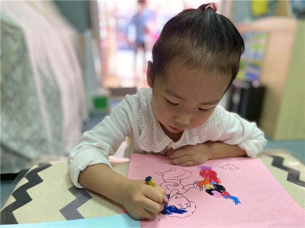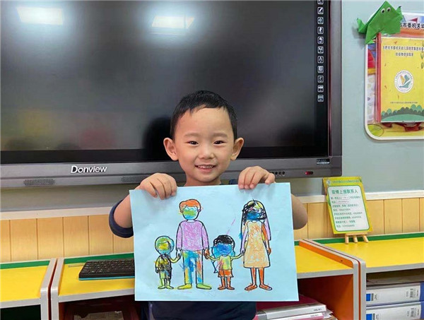 儿童是天生的艺术家,他们喜欢想象,也总能将他们的创意个性展现出来,绘制出一幅幅色彩斑斓的杰作。在小野的提议下,幼儿自发进行绘画涂鸦,这时,为了营造温馨充满爱的氛围,老师播放抒情的轻音乐,让孩子感受歌曲带来的美好情感。并请幼儿用手中的蜡笔,把心中对爸爸妈妈的爱画出来,和小伙伴一起分享。