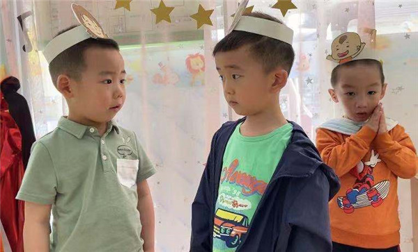 这时,班级幼儿开始选择角色,和同伴分配角色,进行情景表演。在温馨的背景下,在轻松愉快的氛围中,孩子们一起进行合作表演,“尿床怪兽春奈哥斯拉”“细菌大鬼”“小波”这些角色,孩子都想逐一尝试,现场热闹非凡。