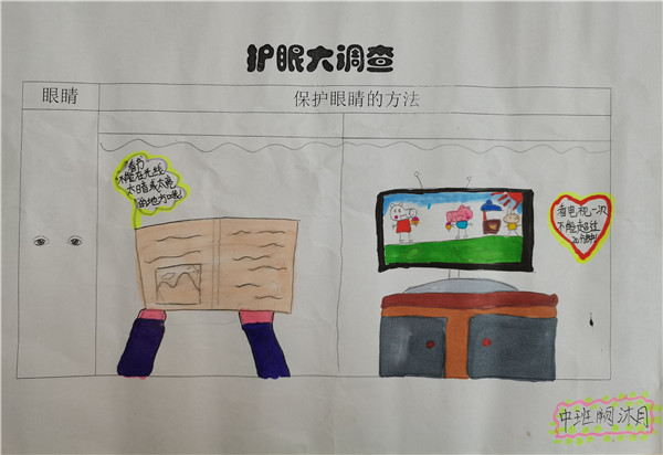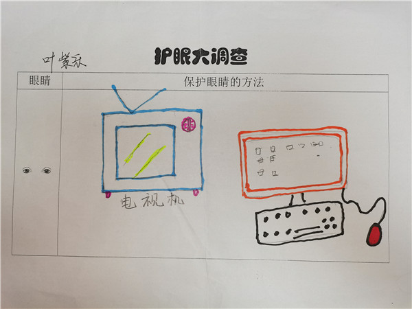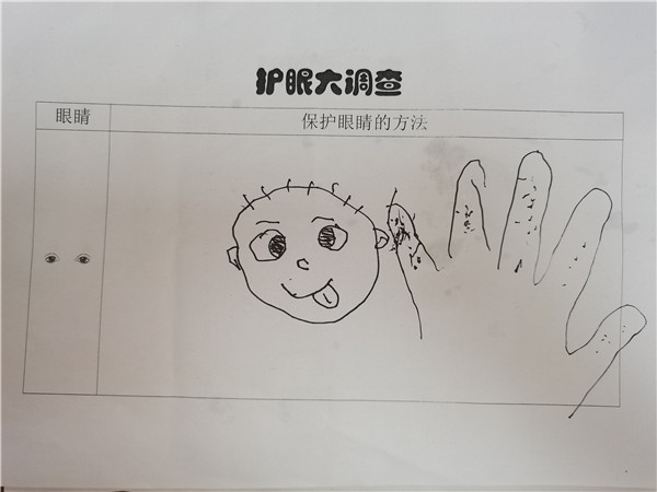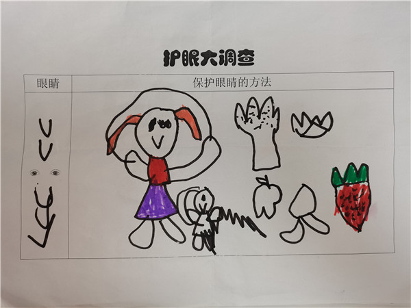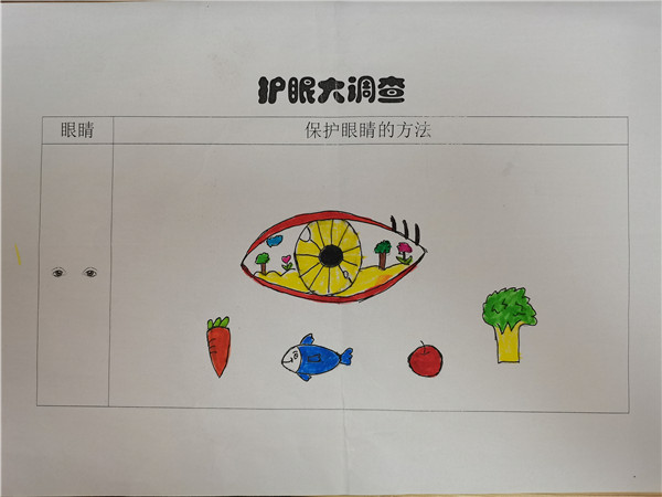 孩子们和爸爸妈妈对保护眼睛的方法进行了调查,同时将自己的结果记录下来,并且把自己的调查结果与同伴进行分享。
