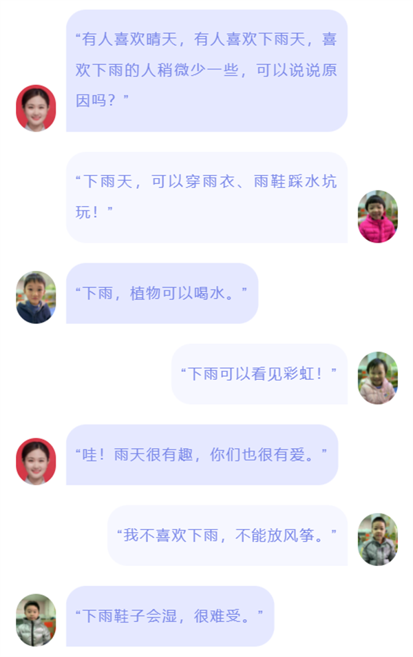 下雨很常见,孩子们也积累了相关生活经验,所以关于下雨的话题,孩子们十分兴奋,参与感很高。