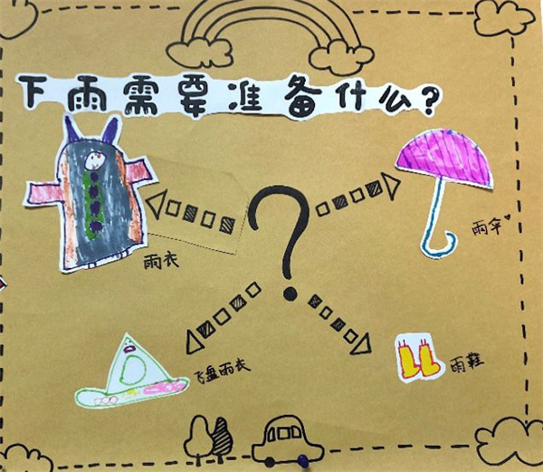 探讨中,突然听到阿苳问道”雨是从哪里来的?“这时,孩子们的反应大不相同,有的一脸懵懂,好似对这个问题全然不知,习惯性等待老师的解答。有相关知识积累的小朋友跃跃欲试地举手,迫不及待地要公布答案。