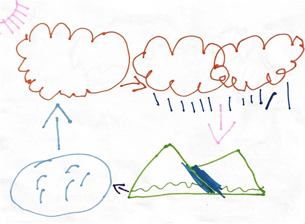 就在这个时候,小博站了起来大声说道:“我知道,雨就是水蒸气,水蒸气升到天上,飘在云朵里,然后就下雨了!”