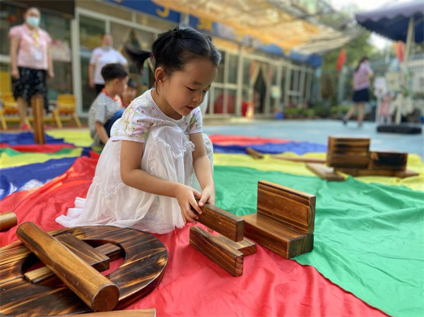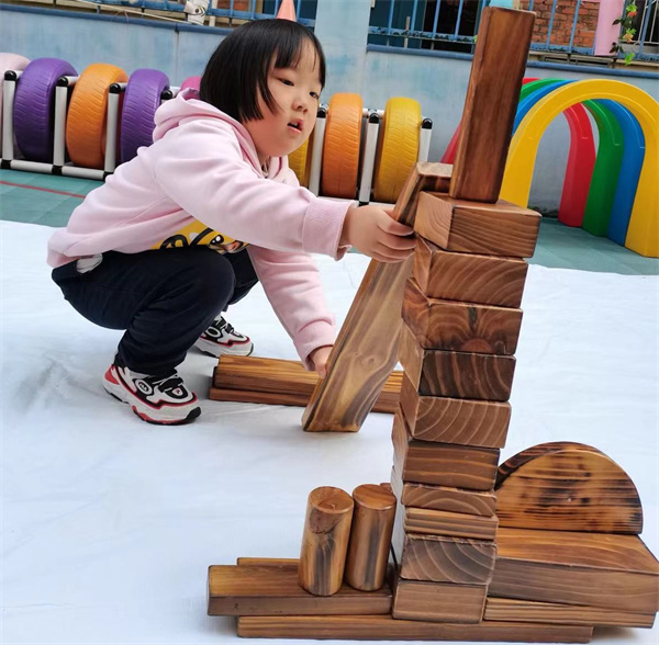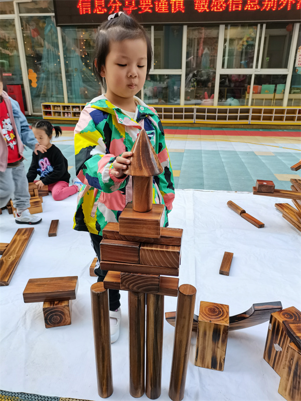 幼儿在一次次的探索中,发现让房子稳固的办法。幼儿通过不断尝试、探索,体验成功和快乐。