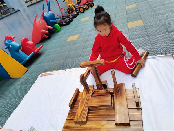 我们一起来做小小设计师,搭房子喽!看!我们盖的房子是不是很棒!房子里面有着我们童年的七彩梦!