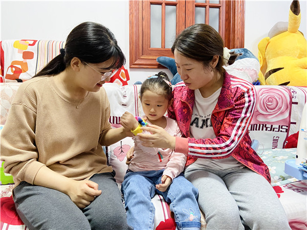 之后又来到了慧慧家里,上了大班以后慧慧有了很大的进步,和老师小朋友之间开始主动沟通,慢慢没有了距离感,家长表示看到了宝贝巨大的进步。老师还和家长交流亲子互动的方法,收集家长在陪伴中遇到的问题,也与家长共同梳理了陪伴中的好方法、新经验。