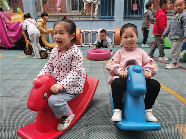我园保证幼儿每天有充足的游戏活动时间,让孩子能在丰富多彩的活动中,得到健康快乐的发展。同时教师们以饱满的热情,将各种玩具创新的组合成各种有趣的运动器械,充分满足了孩子们活动锻炼的需要。幼儿园里随处可以看见孩子们游戏的身影,他们快乐的笑声在幼儿园的上空回旋。