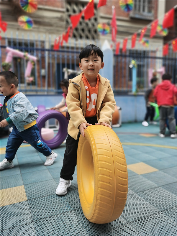 户外活动时,操场上都呈现出一片热闹景象,我们有的玩轮胎、有的玩独木桥、还有滑滑梯……,玩得不亦乐乎,尽情享受着大自然的新鲜空气,在自由快乐中锻炼身体茁壮成长。