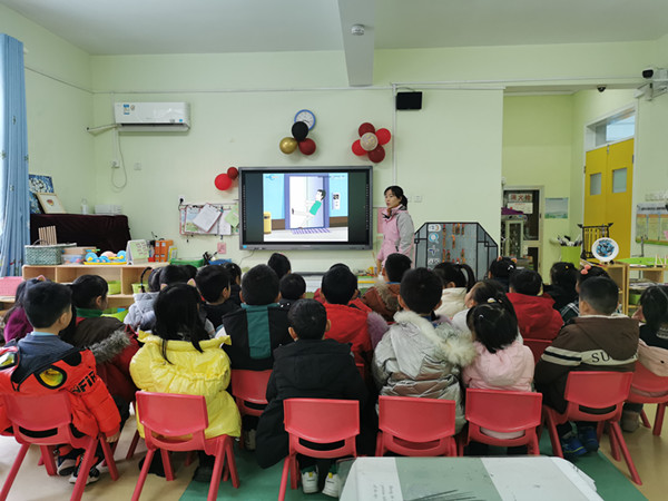老师制作PPT,结合相关图片、视频进行讲解,让孩子们学习了如何安全乘坐电梯。让我们一起来学一学吧!如:不要踩在黄色安全警示线,更不要在电梯门口走或跑;不要将物品及衣物塞入电梯门缝中;不要在电梯里攀爬、玩耍、倚靠或争先恐后,不要乱按电梯按钮及警铃;乘坐电梯要有家长陪同。电梯运行中出现故障时,不要惊慌,应按对讲或警铃按钮通知维修人员救援,不要乱动乱按。