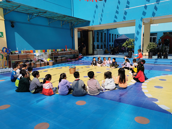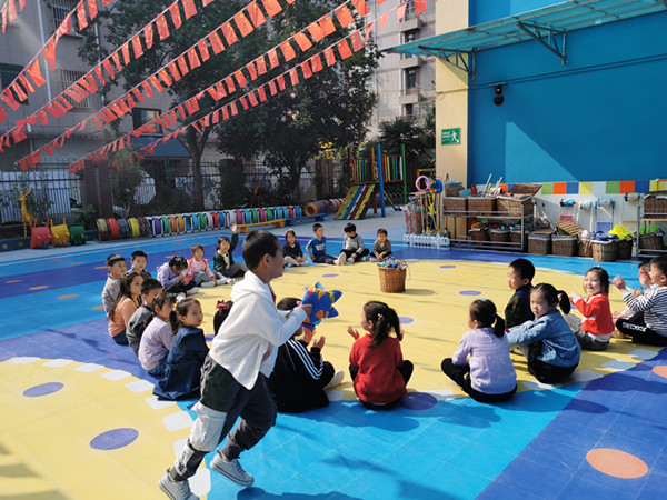 今天的天气真好!阳光明媚的上午时光,合肥市庐阳实验幼儿园教育集团海棠园大二班孩子们都来到了大操场上,进行户外活动。“丢呀,丢呀,丢手绢……”听!悦耳的歌声在美丽的幼儿园里响起,宝贝正在和老师一起玩丢手绢的游戏呢!