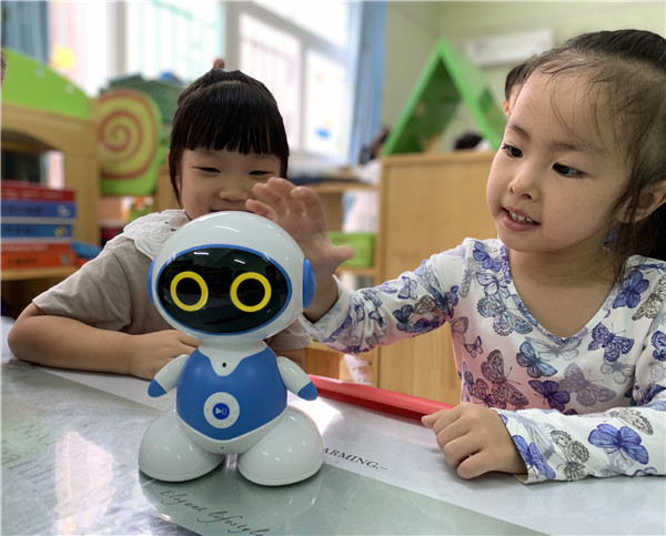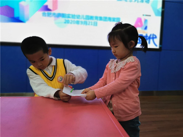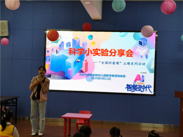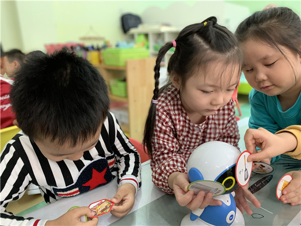 海棠园也以幼儿的年龄特征为基础,以大班幼儿的兴趣需要为出发点,老师们安排了和主题相关的一系列科学活动,如:科学小实验分享会、与机器人互动游戏、科学区区域游戏等,宝贝们通过自身的感知和操作,在玩中学、学中玩,探索科学和自然的奥秘,老师们参与、引导、帮助、支持幼儿,激发幼儿对科学的兴趣。