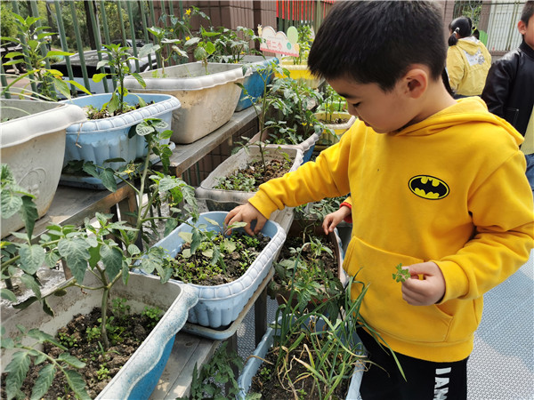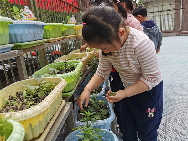 近期,大一班的老师们为了带孩子们进一步理解孩子们投票选出来的最喜爱的绘本故事《小鸡球球和向日葵》带着孩子们开展了一系列活动。“孩子们,你们还记得小鸡球球和它的好朋友向日葵第一次相遇是在什么季节还有什么地方吗?”在老师的引导下孩子们积极的开始讨论着。“那,老师我们一起用黏土做很多漂亮的花装饰一下这个山坡吧!”孩子们兴高采烈的拿出自己的黏土开始了创作,一朵朵美丽的小花朵诞生在孩子们的小手中。与此同时为了让孩子们进一步理解小鸡照顾向日葵成长的艰辛,老师们带着孩子一起来到绿植区为绿植除草浇水,一番辛苦劳动后孩子们纷纷感叹道:“照顾植物长大可真不容易呀,小鸡球球对自己的朋友可真好!”