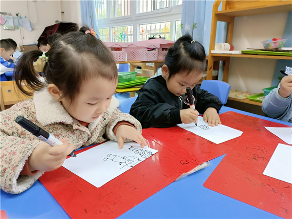 粗细交织的线条随着孩子们小手的转动游走在洁白的画纸上,一只只可爱的小动物跃然纸上。孩子们兴奋地向老师和同伴介绍自己最喜欢的小动物。在绘画和交流中,我们能看到孩子们对小动物有着浓浓的兴趣,形象而简单的线条瞬间化身成一只只灵动可爱的小动物,在交流分享的过程中幼儿的语言表达能力也得到了提升。