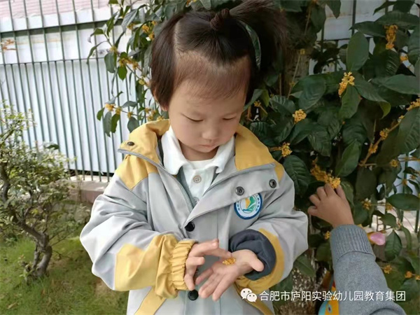 在采摘桂花的过程中,孩子们发现收集到的桂花颜色不同,并提出了疑问,为了解决这一困惑,回到班级后,教师开展了相关活动。
