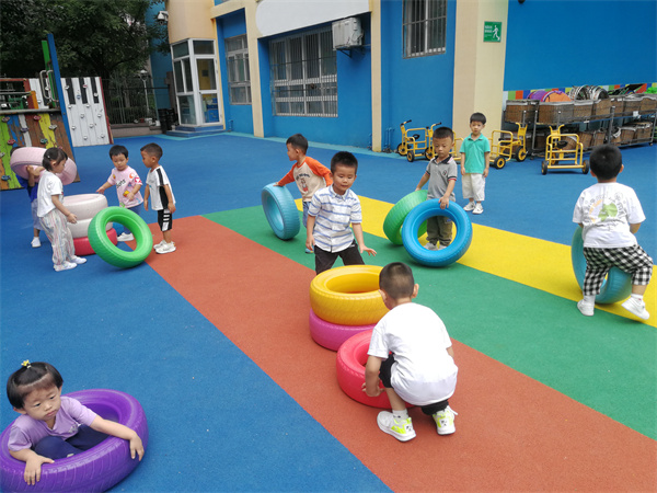 老师还带我们到户外游戏,滑滑梯、轮胎、小车……各种各样的玩具,真好玩~