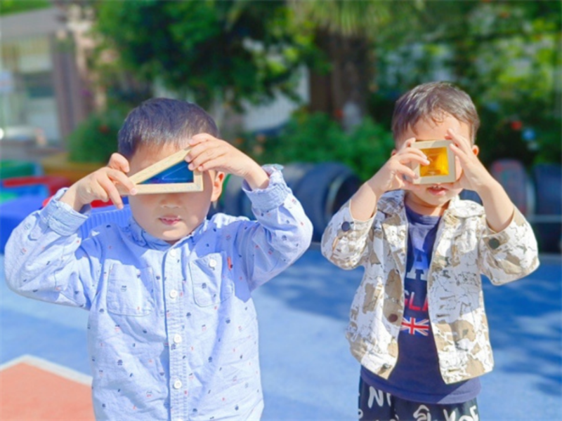春光旖旎的四月里,明媚的阳光透过班级里的彩色透明砖块,留下了斑斓的投影。“看,地上变绿了。”“因为有光!”“这个板是绿色的,所以就绿了”孩子们你一言我一语的讨论着。可答案到底是什么呢,孩子们决定一起去阳光中寻找答案。