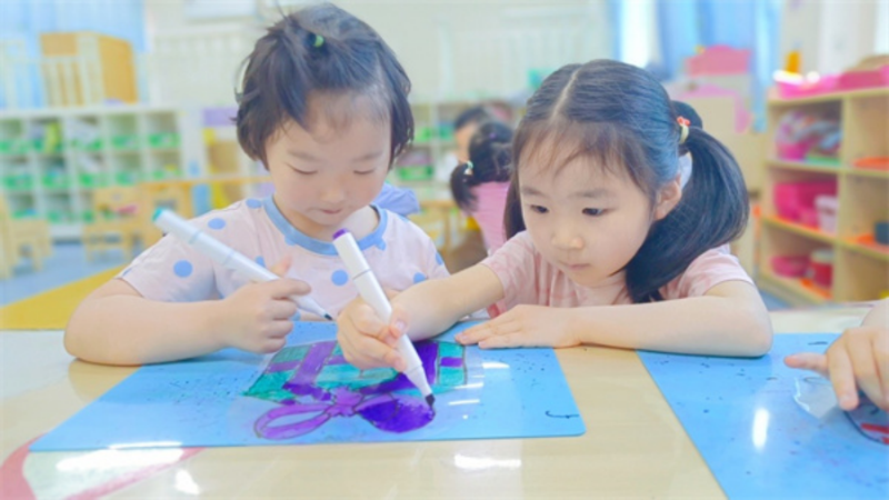 为了制作更多形状的彩色影子,孩子们在老师们的介绍下,用手中的彩笔为不同造型的透明卡片涂上了缤纷的颜色。每一张卡片都颜色鲜明、创意独特,富有童趣。孩子们也在一次次颜色选择中不断地思考,提升审美能力。