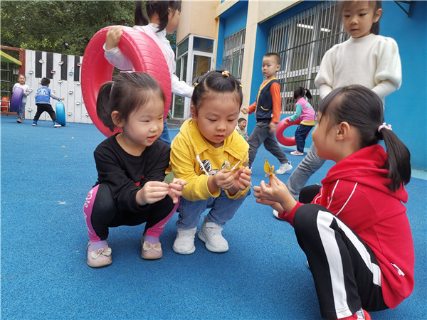 秋风吹过,落叶纷纷。叶子一片片飘落在地上,带着秋天独有的魅力,引起了孩子们的兴趣。孩子们在户外游戏的时候,偶然发现地上有许多叶子。午户外活动时候,老师带着所有的孩子们一起漫步在园里的各处,捡拾树叶。孩子们看到地上、树上有不同颜色的树叶,有绿的、黄的、红的、还有干叶子,孩子们纷纷捡起来。不时地有新发现。
