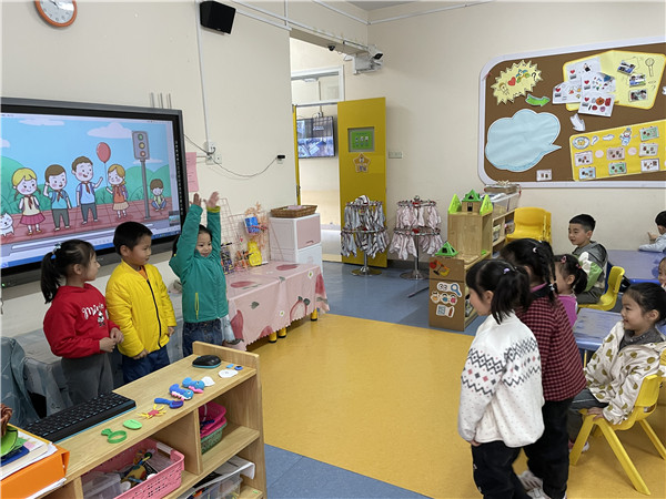 老师还用贴近幼儿生活的事例,采用现场提问、看图片回答问题、情景模拟等多种互动的形式,深入浅出地讲述有关交通安全方面的知识,引导孩子感知日常生活中行走、过马路、乘车时如何注意安全。