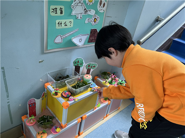 在照顾蚕宝宝的过程中,孩子们还将蚕宝宝一天天长大发生的变化画在记录本上。此外,他们还会在美工区用超轻粘土捏一捏、做一做可爱的蚕宝宝,用多种方式将蚕宝宝的样子记录下来,也为蚕宝宝营造了温馨的“家”。