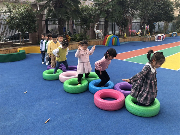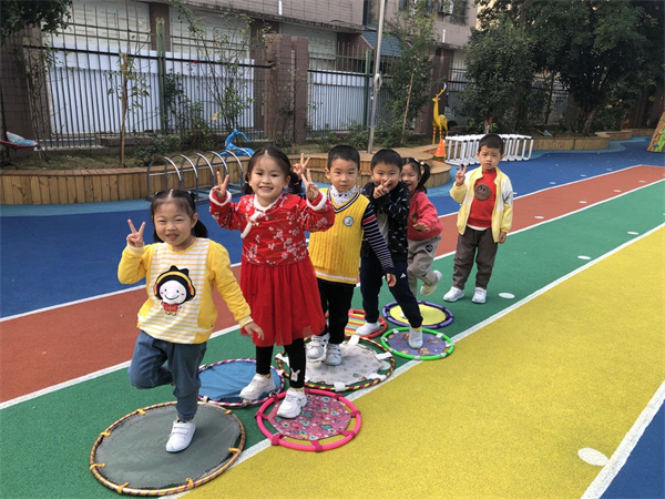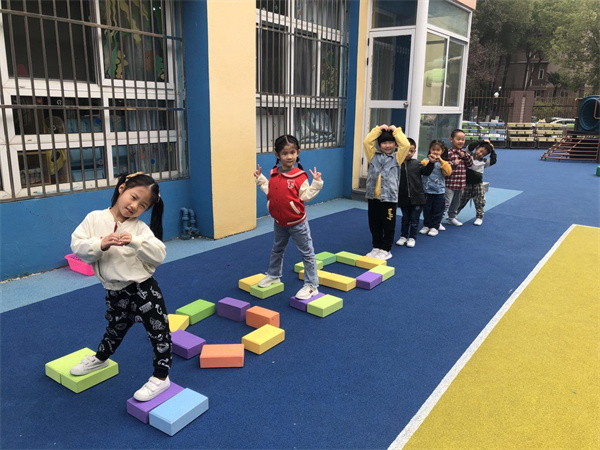 在游戏过程中,孩子们通过体验以及讨论,发现游戏是需要一定规则的。 这是一个充满探索与挑战的游戏,在游戏中幼儿的身体协调性以及平衡能力得到提升,同时培养了幼儿社会性能力的发展,孩子们也在探索中发现了游戏的新玩法。在孩子们的不断设计、调整、实践中我们的跳房子游戏有了不一样的样子。让我们一起继续探索还可以用其他什么材料来进行游戏吧!