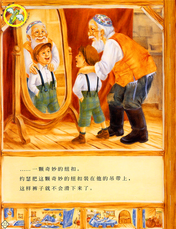 约瑟嚷着:“我的纽扣!我的奇妙纽扣不见了!”他的妈妈跟着跑过来,说:“约瑟!听我说。”
