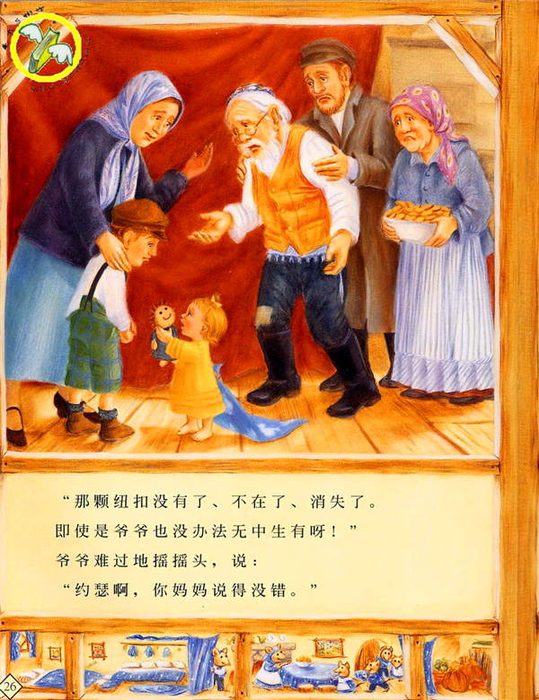 他找遍了所有的地方,就是找不到纽扣。约瑟跑到爷爷家。