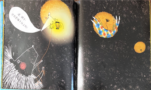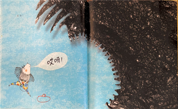 小老鼠还带来了一根绳子,他让狮子抓住绳子往上爬。