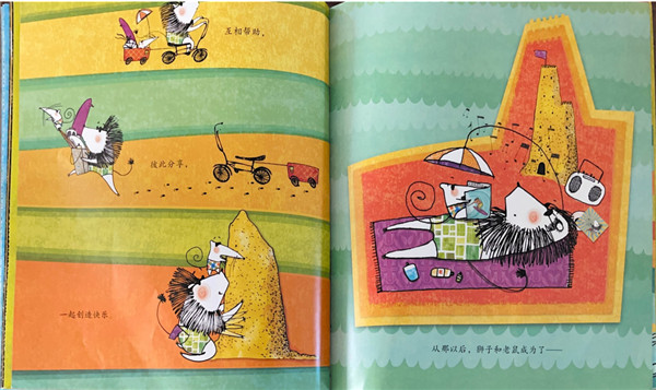 他们一起去野餐,带了很好的好吃的,有甜甜的果汁,也有香喷喷的三明治,狮子一下子吃了很多,最后小老鼠都没有吃的了。
