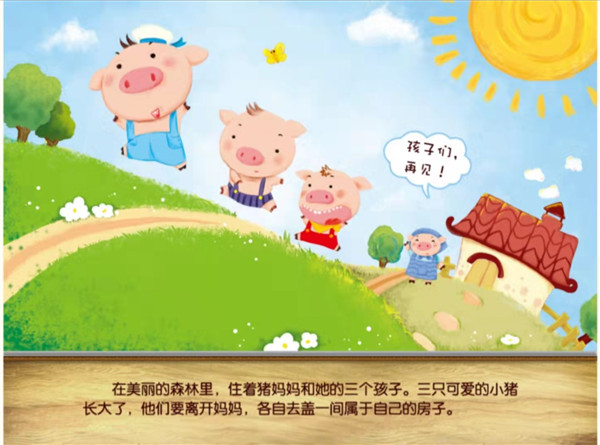 在美丽的森林里,住着猪妈妈和她的三个孩子。三只可爱的小猪长大了,他们要离开妈妈,各自去盖一间属于自己的房子。