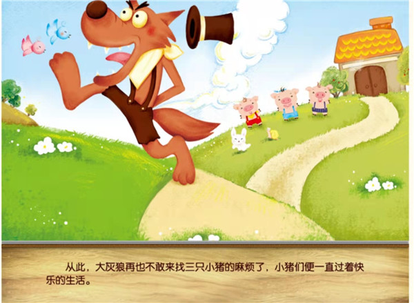 从此,大灰狼再也不敢来找三只小猪的麻烦了,小猪们便一直过着快乐的生活。