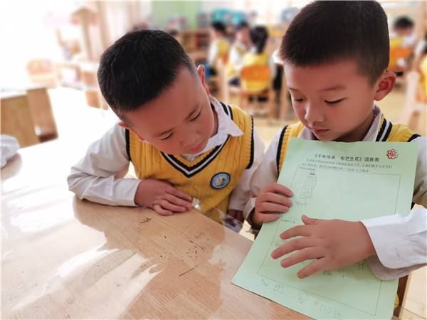 首先对于怎样扎染,需要什么材料,以及材料应该怎样使用等方面,根据孩子们的反馈,我们设计了一份调查表,希望他们能够通过调查记录的方式,初步了解扎染的粗浅知识。 孩子们通过调查发现自己和别人的调查结果并不完全相同。我利用起床后的时间,开展了集体的分享讨论,当孩子们发现不同时鼓励他们共同探索,一起寻找答案。