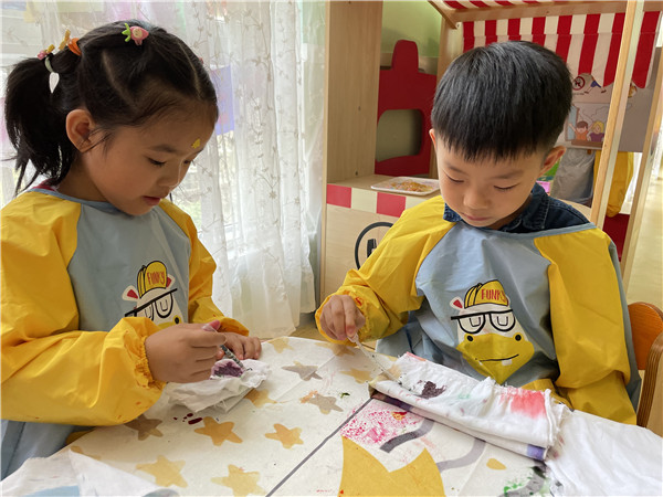 在活动过程中,孩子们用自己的方式不断的探索、学习,解决一个个难题,每一次扎染都是一种全新的体验,看着一块块白布在自己的手中变成独一无二精美作品,感受着传统工艺独特魅力,不仅提升了自信心和自豪感,同时也体验到扎染活动本身的无限乐趣。