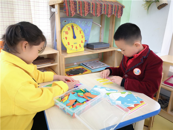 丰富多彩的区域环境为孩子提供了探索、求知、交往、合作的机会。表演区内,孩子们协商分工,排练合作,共同完成一出精彩的表演;美工区内,宝贝们剪纸、绘画、做手工,将童趣的想象汇聚指尖;数学区内,孩子们聚精会神的参与操作;建构区内,一个个美妙的作品正在悄然诞生……