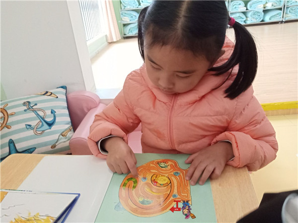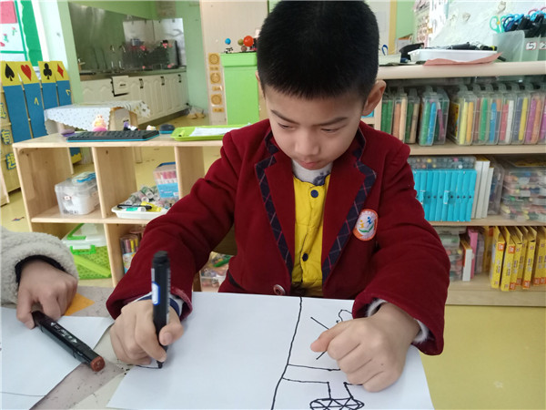 为了更好的进行区域游戏,游戏开始前老师和小朋友们会回顾游戏游戏规则。在拿到自己的区域牌后选择自己喜欢的区域进行游戏。看,美工区的小朋友们拿出绚丽的彩笔正在绘画春天;益智区的小朋友则三五成群,或合作拼图,或对弈一局,或独自思考;建构区也不甘示弱,酸奶瓶、碳化积木、纸杯……不一会儿,一座串连两岸的大桥平地而起;瞧,植物角、图书区、表演区、科学区也热闹非凡。
