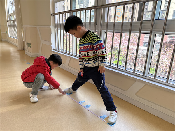 在测量完身体后,孩子们又开始了新一轮的测量——测物体。