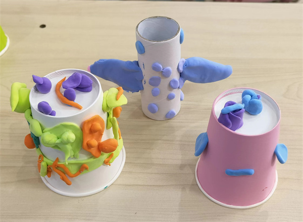 但是,一段时间之后,玩泥的孩子越来越少,或许是他们能做的东西太少了,渐渐便失去了兴趣。于是,我们又开启了一次讨论会——怎样才能做出自己喜欢的东西?