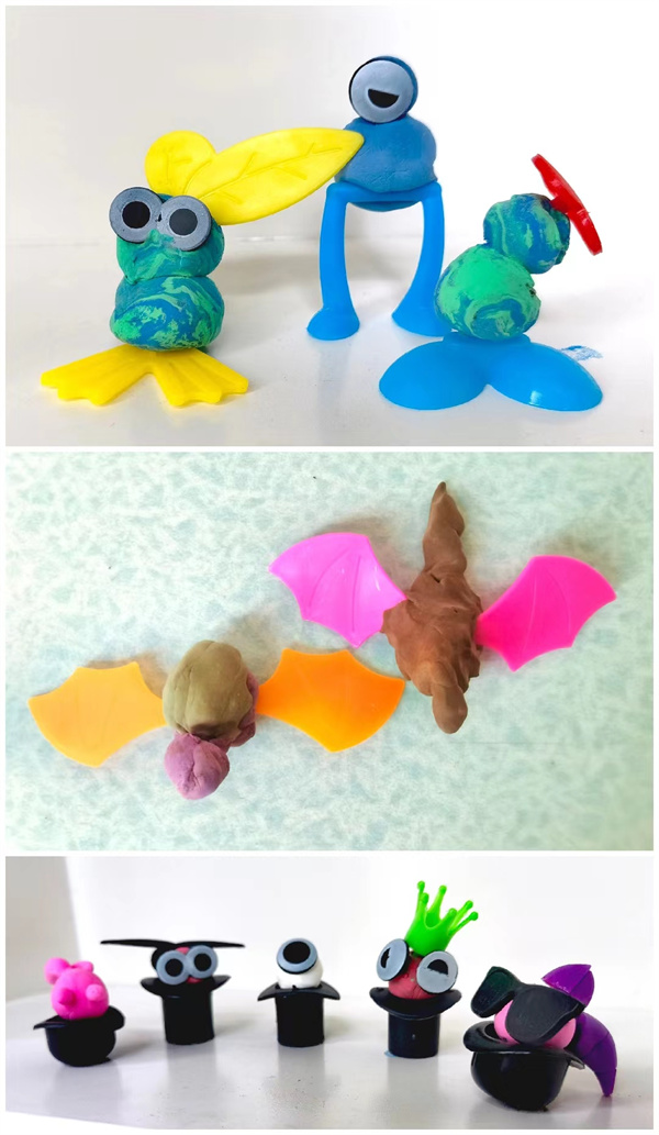 “老师,我做了一只小猪,我可以用这个玩具做翅膀吗,这样它就变成一只会飞的小猪了。”“当然可以啦。”