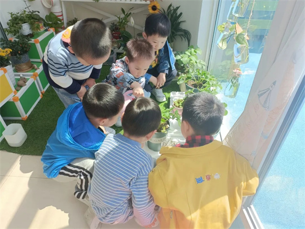 春天是播种的季节,也是希望的季节,新学期,小朋友们从家里带来各种绿植装扮班级的植物角,随着绿植越来越多,植物角也越来越好看了。周一的早上,植物角出现的一棵不知名的小绿植引起了小朋友的围观和讨论。