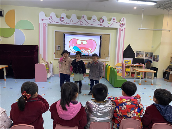 活动中,邀请幼儿示范如何正确地洗手、漱口和打喷嚏等行为习惯,引导幼儿从生活中的点滴小事做起,更有效地预防传染病。幼儿知道要养成良好的卫生习惯,做到勤洗手、勤洗澡、勤换衣、勤剪指甲,防止病从口入;多锻炼身体;早睡早起;多喝水;多吃水果蔬菜;少去或不去人流拥挤的场所。