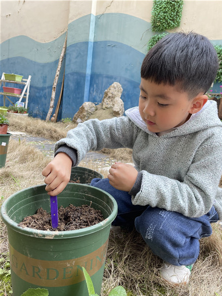 为了让幼儿在幼儿园体验田园生活,观察了解种植的每一个步骤,感知植物的生长过程,同时也让幼儿体验劳动收获的快乐,结合《幼儿园教育指导纲要》的精神要求,庐阳实验幼儿园教育集团红玺台总园认真考察,合理布局,将种植活动纳入幼儿园一日生活的日常工作,在园内为小中大班都开辟了种植园地,中三班幼儿2021年3月25日在老师的带领下一起来到种植区。