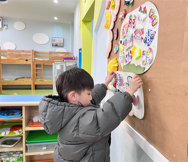 小朋友们都十分认真,安安静静地完成自己的作品,随着每一种颜色点染在纸巾上,孩子们的创作也接近尾声。